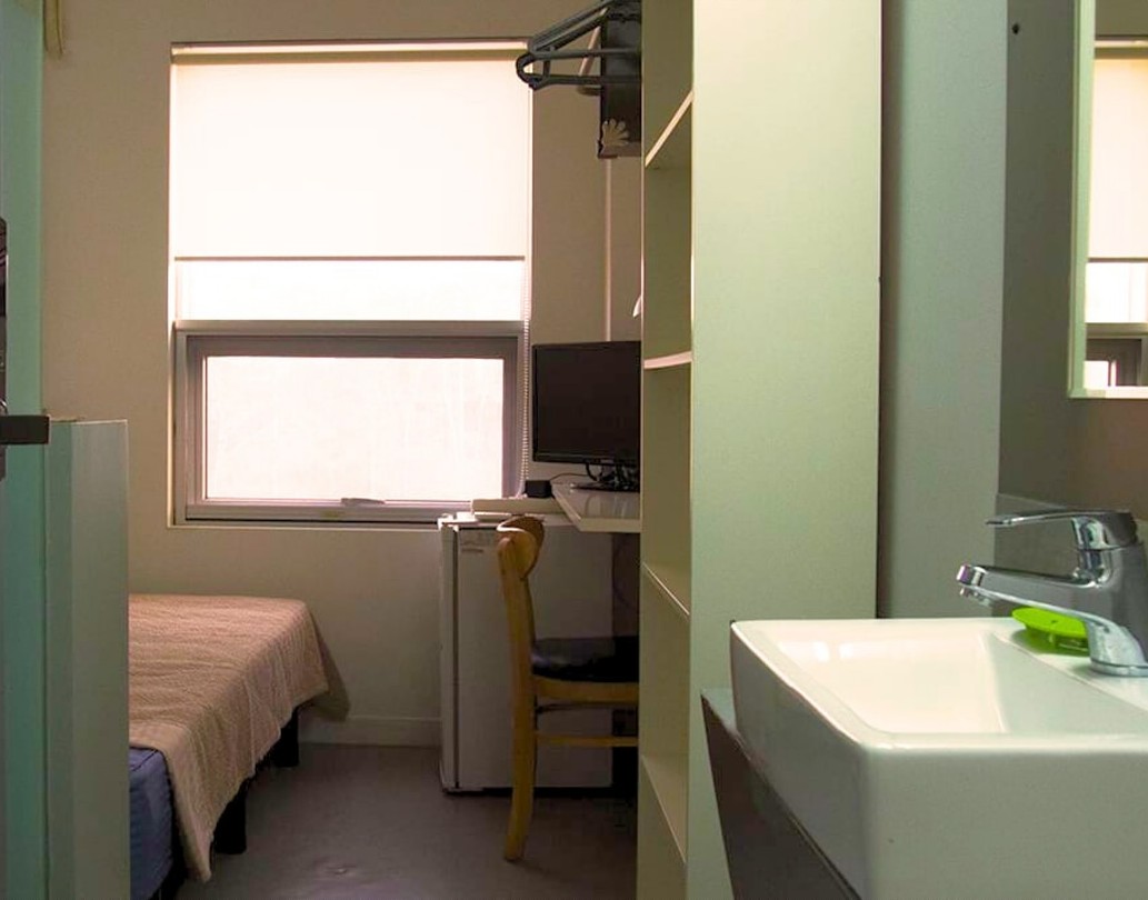 The dormitory is located within a 10-minute walk of the school and nearby subway stations, offering convenient access to classes and surrounding areas while saving commuting time and expenses. All students stay in single rooms with a private shower and washroom, providing a comfortable and independent living environment. Rooms also include a mini-fridge, and shared kitchen and laundry facilities are available in the building.